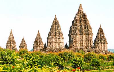 The request was nearly fulfilled Jonggrang asked the villagers to pound rice and make a big fire that created an atmosphere like the morning. Bondowoso who only completed 999 statues cursed Jonggrang be a statue of the 1000 because he felt cheated.Prambanan temple has three main temples in the primary yard, namely Vishnu, Brahma, and Shiva. The three temples are a symbol of Trimurti in Hindu belief. All of them face east. Each main temple has accompanying temple facing to the west, namely Nandini for Shiva, Swan to Brahma, and Garuda for Vishnu. In addition, there are 2 temples wedge, 4 color temples and 4 corner temples. In the second there are 224 temples.